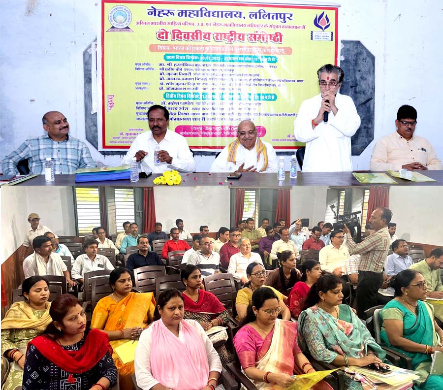 ललितपुर:- अखिल भारतीय साहित्य परिषद उत्तर प्रदेश एवं नेहरू महाविद्यालय के संयुक्त तत्वावधान में संस्कृत सभागार में दो दिवसीय राष्ट्रीय संगोष्ठी के उद्घाटन सत्र का शुभारम्भ उ.प्र. के दर्जा प्राप्त राज्यमंत्री एवं अंतर्राष्ट्रीय बौद्ध संस्थान के उपाध्यक्ष हरगोविंद कुशवाहा, कार्यक्रम अध्यक्ष प्रो. ओम प्रकाश शास्त्री प्राचार्य नेहरू महाविद्यालय ललितपुर ने संयुक्त रूप से मां सरस्वती पूजन एवं दीप प्रज्ज्वलन करके किया।