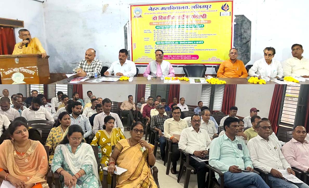 ललितपुर। अखिल भारतीय साहित्य परिषद उत्तर प्रदेश एवं नेहरू महाविद्यालय के संयुक्त तत्वाधान में संस्कृत सभागार में दो दिवसीय राष्ट्रीय संगोष्ठी का आज विधिवत समारोहपूर्वक समापन हुआ। समापन सत्र के मुख्य अतिथि डॉ. महेश पांडे, महामंत्री अखिल भारतीय साहित्य परिषद, उ.प्र., विशिष्ट अतिथि प्रदीप चौबे प्रबंधक नेमवि ललितपुर, शरद खैरा अध्यक्ष-प्रबंध समिति, नेमवि, एवं अध्यक्षता कर रहे प्रोफेसर ओम प्रकाश शास्त्री प्राचार्य नेमवि ने संयुक्त रूप से मां सरस्वती पूजन एवं दीप प्रज्ज्वलन करके किया।