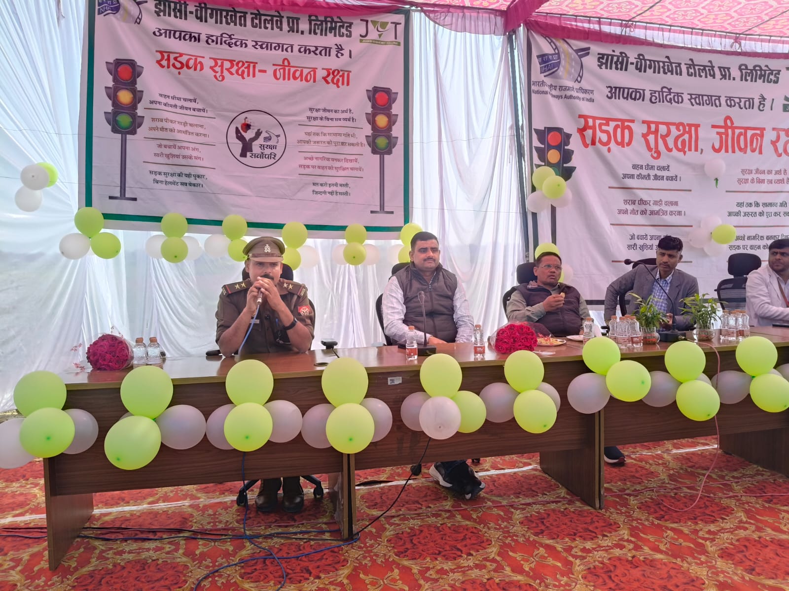 ललितपुर (अनूप नागल पत्रकार):- पुलिस अधीक्षक, ललितपुर के निर्देश के क्रम में, अपर पुलिस अधीक्षक कालू सिंह व क्षेत्राधिकारी यातायात राजेश कुमार श्रीवास्तव के निर्देशन में यातायात पुलिस ललितपुर द्वारा NHAI के सहयोग से बीघाखेत टोल प्लाजा पर निःशुल्क स्वास्थ्य कैंप का आयोजन कराया गया व वाहन चालकों को यातायात नियमों के प्रति जागरूक किया गया।